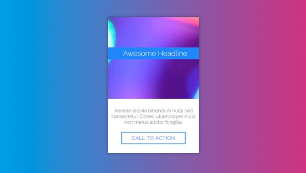 This is an amazing CSS Card in which there is experiment with material design. Animates the featured image and headline and adds button when hovered.